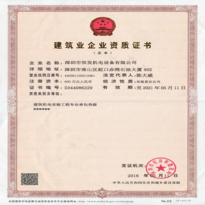 住建局機(jī)電安裝三級資質(zhì)許可證
